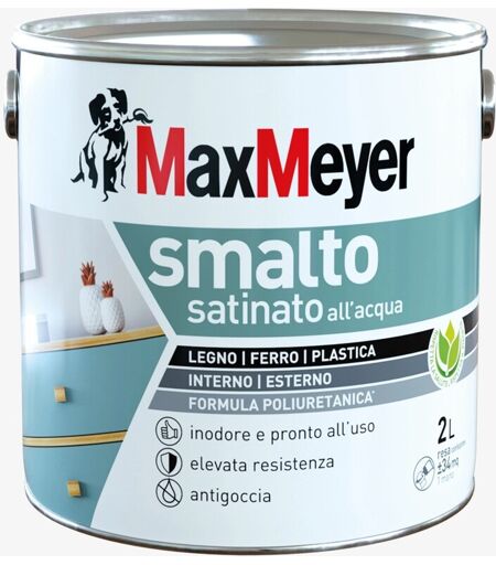 Smalto all`acqua poliuretanico finitura satinata per uso sia esterno che interno, ideale per ferro, legno, plastica, lamiera zincata, pvc, materiali plastici, alluminio. Caratteristiche: poliuretanico, inodore, pronto all`uso, antigoccia, elevata resistenza. ...