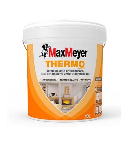 DESCRIZIONE GENERALE Pittura Thermo Active 10 litri di MaxMeyer è una pittura murale termoisolante, anticondensa e antimuffa, ideale per ambienti interni soggetti a umidità e condensa, come bagni, cucine e lavanderie. Grazie alla sua formula con microsfere di vetro, migliora l'isolamento termico e previene la formazione di muffe e funghi. È priva di formaldeide e certificata A+, rendendola sicura per la salute e l'ambiente. SPECIFICHE TECNICHE Resa: 5-7 mq/litro Modalità di applicazione: rullo, pennello o pennellessa Tempo di asciugatura: secco al tatto in max 1h, secco in profondità in max 24h, sovraverniciabilità dopo 8h Pronto all'uso: sì Base: acqua Colore: bianco INSTALLAZIONE Il supporto deve essere asciutto, privo di polvere e sostanze inquinanti. Temperatura ambiente: min. +10°C / max. +35°C; umidità relativa: < 75%. UTILIZZO Applicare una mano di fissativo acrilico se necessario. Dopo 4-6 ore, applicare almeno due mani di Thermo Active A+. Diluire con acqua: 15% per ...
