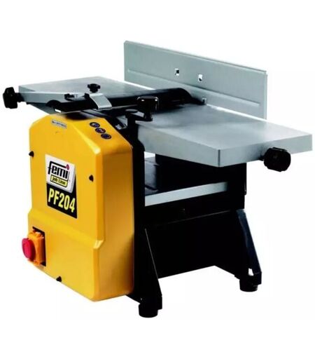 Pialla filo e spessore "PF204" con dimensioni coltelli 210x20 mm, 1250 W - FemiPialla filo e spessore "PF204" Femi con potenza motore 1250 W, alimentazione 230 V e 50 Hz e 8000 RPM. Presenta una dimensioni coltelli di 210x20 mm, larghezza massima piallatura 210 mm e asportazione regolabile 0 : 2 mm. La pialla a filo possiede dimensioni tavola superiore 744x210 mm e dimensioni guida parallela 500x90 mm. L'altezza piallatura spessore ha altezza massima di 120 mm, asportazione regolabile 0 : 2 mm e velocità avanzamento 8 mt/min. La pialla a filo e spessore include con kit cinghie di ricambio, spingilegno e coppia di coltelli. Caratteristiche del prodotto Potenza (W) 1250 Marca Femi Motore Potente Dimiensioni prodotto Larghezza: 0.46 m. Altezza: 0.44 m. Profondit: 82.0 cm. Peso: 25.0 Kg. Dimensioni Imballo Larghezza: 46.0 cm. ...