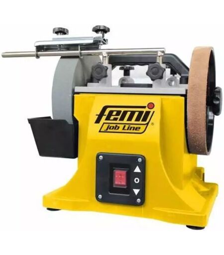 Affilatrice ad acqua con motore monofase 150 W ed una mola abrasiva griglia 200x40x12 mm. Dispone di 1400 RPM e disco in cuoio di 200x300x12 mm. L'affilatrice ad acqua include un supporto regolabile per differenti utensili ed una maniglia per il trasporto. L'affilatrice "SH23-730" di Femi è fornito di disco in cuoio, mola abrasiva, goniometro, pasta per affilatura. Chiavi ed accessori per la manutenzione inclusi. Caratteristiche del prodotto Potenza (W) 150 Marca Femi Motore Monofase Dimiensioni prodotto Larghezza: 0.37 m. Altezza: 0.36 m. Profondit: 38.5 cm. Peso: 8.0 Kg. Dimensioni Imballo Larghezza: 37.0 cm. ...