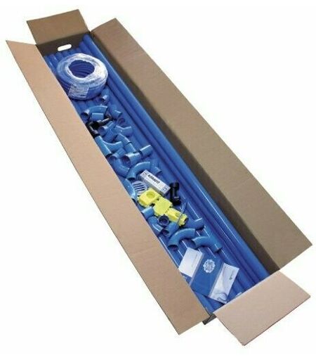 Aertecnica Set Predisposizione impianto d'aspirazione centralizzata Classic per 3 Punti Presa NEW AIR Ø 50. Materiale incluso nel Set: Tubo PVC Ø 50 barre da mt 2 BLU mt 20 Contropresa New Air Ø50 con raccordo curvo n° 3 Curva PVC a 45° FF Ø 50 BLU n° 6 Curva PVC a 45° MF Ø 50 BLU n° 6 Curva PVC a 90° FF Ø 50 BLU n° 4 Derivazione PVC a 90° FF Ø 50 BLU n° 3 Manicotto con battente PVC Ø 50 BLU n° 8 Aumento concentrico PVC Ø F50/F82 n°1 Griglia sfiato PVC Ø 82 n°1 Mastice autosaldante per PVC (tubetto da gr 125 con dosatore) n°1 Preinfilato H05V-K 2x1 guaina Ø 16 IMQ mt 25 Fascette di cablaggio PVC BLU cm 30 n° 15 Manuale residenziale per installazione prodotti I cavi presenti all’interno del preinfilato sono conformi all’aggiornamento normativo EN 50575:2014+A1:2016. ...