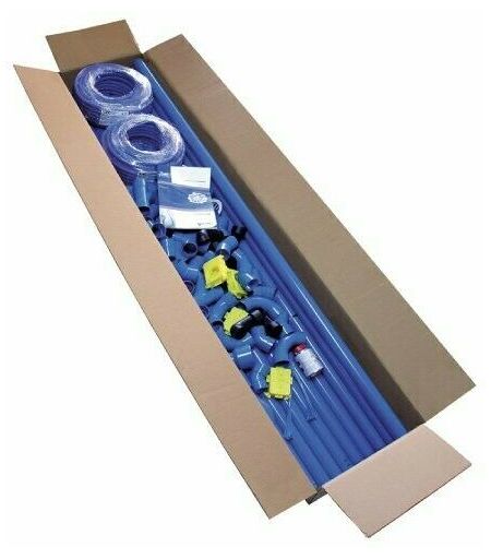 Aertecnica Set predisposizione impianto d'aspirazione centralizzata Classic 5 punti presa NEW AIR Ø 50. Materiale incluso nel Set: Tubo PVC Ø 50 barre da mt 2 BLU mt 34 Contropresa New Air Ø50 con raccordo curvo n° 5 Curva PVC a 45° FF Ø 50 BLU n° 8 Curva PVC a 45° MF Ø 50 BLU n° 8 Curva PVC a 90° FF Ø 50 BLU n° 7 Derivazione PVC a 90° FF Ø 50 BLU n° 5 Manicotto con battente PVC Ø 50 BLU n° 10 Aumento concentrico PVC Ø F50/F82 n°1 Griglia sfiato PVC Ø 82 n°1 Mastice autosaldante per PVC (barattolo gr.250 con pennello) n°1 Preinfilato H05V-K 2x1 guaina Ø 16 IMQ mt 50 Fascette di cablaggio PVC BLU cm 30 n° 30 Manuale residenziale per installazione prodotti I cavi presenti all’interno del preinfilato sono conformi all’aggiornamento normativo EN 50575:2014+A1:2016. ...