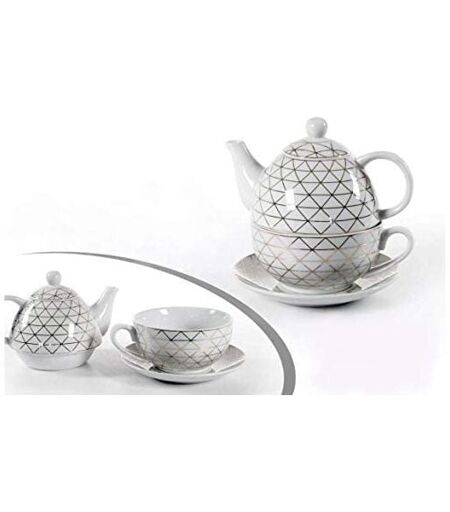 GICOS Set da tè con tazza e teiera incorporata bianca e oro