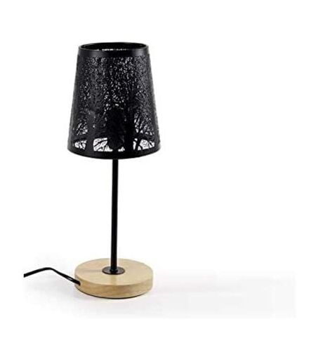 GICOS Lampada da tavolo con paralume in metallo nero e base tonda in legno 35 cm
