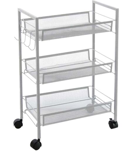 GICOS Carrello bianco da cucina portafrutta 45X27X63H cm struttura in metallo con 3 ripiani + rotelle e appendi strofinaccio