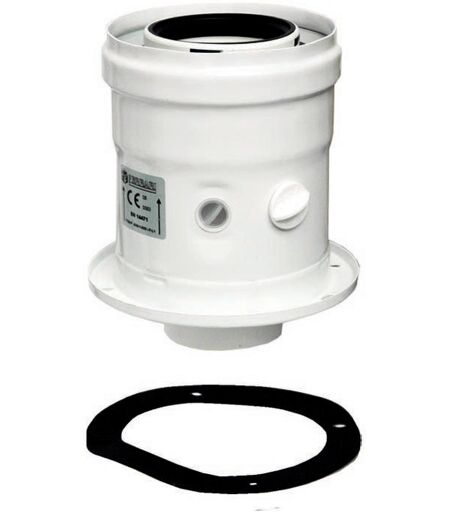Attacchi: Ø 60/100 Interno: Ø 60 in polipropilene. Esterno: Ø 100 in metallo verniciato bianco. Adattabile a: ARISTON - BERETTA- CHAFFOUTEAX - RIELLO - SYLBER - VAILLANT ...