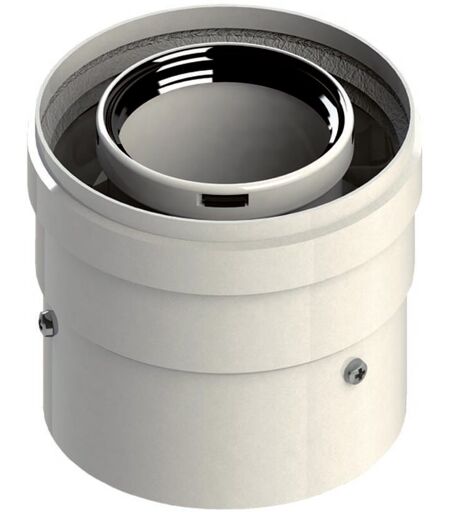 TRONCHETTO DI PARTENZA COASSIALE CON FLANGIA PPS / METALLO VERNICIATO Attacchi: Ø 60/100 Interno: Ø 60 in polipropilene. Esterno: Ø 100 in metallo verniciato bianco. Adattabile a: BAXI - ROCA- VIESSMANN ...