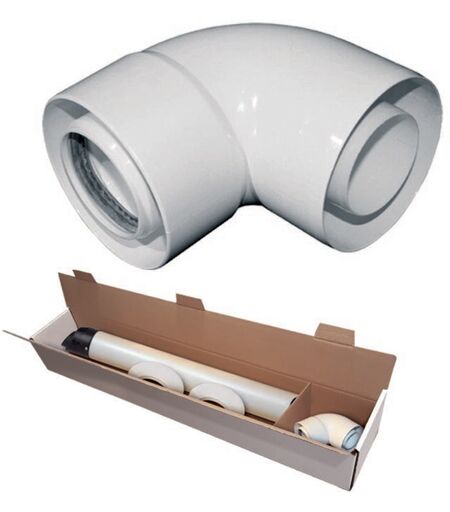 KIT COASSIALE - PPS / PVC Kit 003 - COAX Adattabile a: ARGO - BAXI - ROCA - VIESSMANN IL KIT COASSIALE COMPRENDE: 1 curva a 90° con/senza ispezione adatta al modello della caldaia Ø 60/100; 1 tubo da 750 mm con montato un terminale trattato anti U.V. per la funzione di aspirazione e scarico Ø 60/100; 1 rosone in polipropilene trattato anti U.V. per esterno; 1 rosone in EPDM per interno; viti di fissaggio. ...