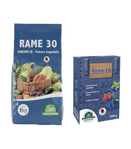 Concime polvere bagnabile Rame 30 Agribios Polvere bagnabile a base di ossicloruro di rame e borato di sodio, consentito in agricoltura biologica. Azione collaterale contro le malattie fugine, riduce gli squilibri di carenze nutrizionali Confezione 1 Kg. ...