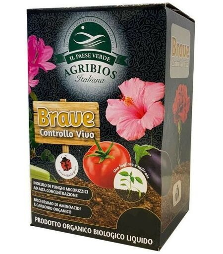 AGRIBIOS - Brave funghi micorrizici 250 gr Inoculo di funghi micorrizici ad alta concentrazione • Ricchissimo di aminoacidi e carbonio organico. Consentito in agricoltura biologica AGRIBIOS - Brave funghi micorrizici 250 gr BRAVE Controllo Vivo è un prodotto ad azione specifica, inoculo di funghi micorrizici, frutto di studi e sperimentazioni da parte di Agribios Italiana per l’agricoltura professionale. BRAVE Controllo Vivo, a base di aminoacidi vegetali e carbonio organico, favorisce lo sviluppo e la vegetazione delle piante rendendole più resistenti agli stress. Inoltre favorisce lo sviluppo di funghi utili come Metarhizium anisopliae e Beauveria bassiana in grado di svilupparsi con sostanze proteiche e chitiniche presenti anche negli insetti indesiderati come afidi, acari, aleurodidi, elateridi. DOSI E MODALITA’ D’IMPIEGO Agitare bene prima dell’uso. Diluire il prodotto alla dose di 3 g per litro d’acqua e bagnare bene la vegetazione (avendo cura di irrorare anche la pagina ...