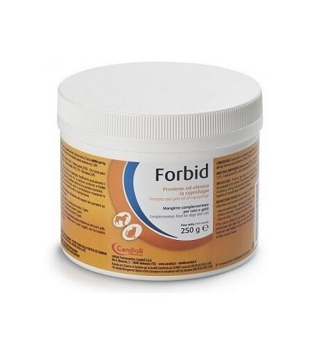 Forbid Previene ed elimina la coprofagia Mangime complementare per cani e gatti Il prodotto disabitua gradualmente il soggetto dall'ingestione delle proprie feci, in caso di coprofagia. Le sostanze contenute nel prodotto rendono infatti le feci totalmente sgradevoli anche ad una parziale assunzione… ...