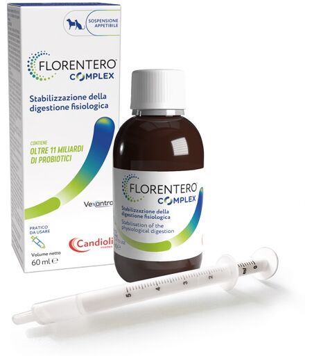 FLORENTERO COMPLEX - Descrizione Mangime complementare dietetico per cani e gatti per la stabilizzazione della digestione fisiologica. Per cani e gatti, adulti e cuccioli. Florentero Complex può essere utilizzato in caso di rischio di disturbi digestivi, nei periodi nei quali tali disturbi sono pre… ...