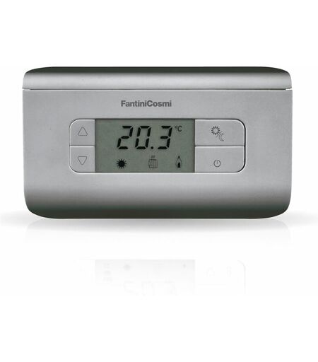 Termostato Fantini Cosmi CH116 Termostato a parete elettronico Fantini Cosmi CH116 a microprocessore, per il comando di impianti di riscaldamento e di condizionamento. Il modello CH115 (CH116) ha la possibilità di collegamento a una sonda secondaria per la temperatura di minima T/min e temperatura di massima T/max. Caratteristiche Marca: Fantini Cosmi Tipologia: Termostato a parete Modello unità: CH116 Codice catalogo unità: CH116 Colorazione: Silver Tecnologia: Termostato ambiente a batterie, 3 temperature, a parete Connessione: Alimentazione 2 batterie AA 1,5V E’ possibile visualizzare il video dimostrativo cliccando qui. ...