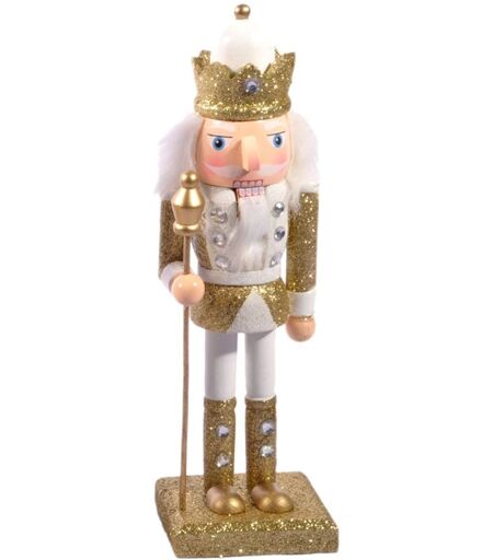 Ciao Schiaccianoci Natale Soldatino Re con scettro (24cm) in legno glitterato, oro/bianco -