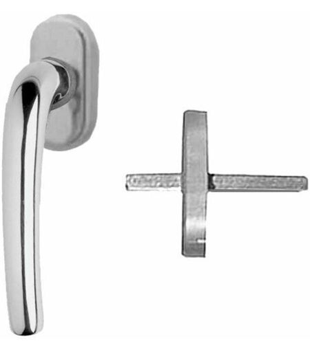 Serie MILENA Ottone cromato satinata Placca mm 32x65 Gioco DK + quadro mm 7x40 Adatta finestre e porte finestre legno ...