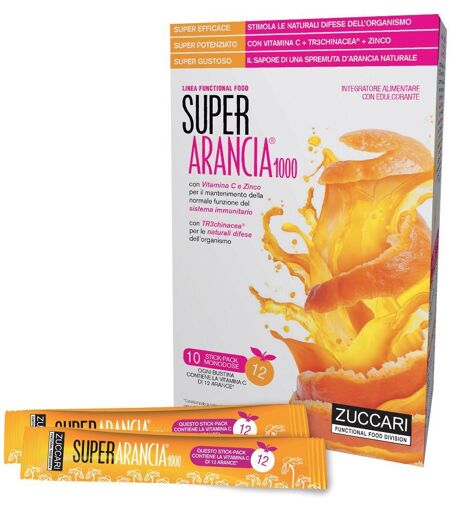SUPER ARANCIA 1000 - Descrizione Integratore alimentare con edulcorante (sucralosio). Aiuta a proteggere le naturali difese dell'organismo e contribuisce al normale funzionamento del sistema immunitario. Con vitamina C, in quantità pari a quella contenuta in 12 arance*, zinco e TR3chinacea, compost… ...