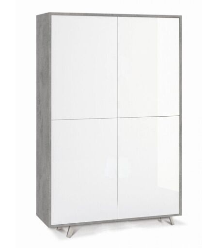 SARMOG Armadio Credenza Cemento Bianco Lucido Ripiani 4 Ante Soggiorno Mobile