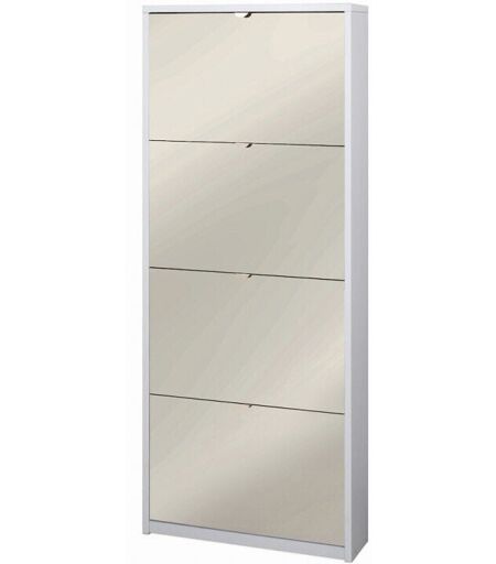 Scarpiera in kit con struttura Bianco Fiammato e ante con specchio. Dotata di 4 ante a ribalta singola con profondità ridotta, capacità fino a 10 paia di scarpe. Maniglie in alluminio satinato. Perfetta per ingressi moderni e luminosi. Tipologia: scarpiera 4 ante a ribalta in kit Struttura: colore Bianco Fiammato Ante: specchio Dimensioni: 63×18×154 cm Materiale: pannello truciolare nobilitato Spessori: 18 mm struttura, 16 mm ante Capacità: 10 paia di scarpe Maniglie: alluminio satinato Bordi: ABS Montaggio: da assemblare ...