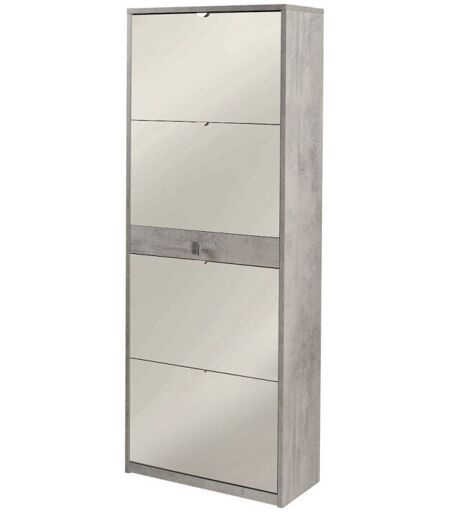 SARMOG - Scarpiera Cemento 4 Ante a Specchio Ribalta Doppia con Cassetto Porta Scarpe