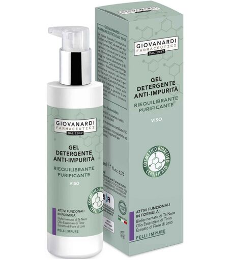 giovanardi farmaceutici Gel Detergente Viso Anti Impurità Riequilibrante Purificante Pelli Impure 200 ml