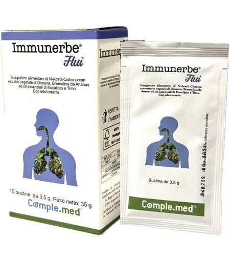 Immunerbe Flui - Descrizione Immunerbe Flui è un integratore alimentare di N - acetil - cisteina con estratto vegetale di drosera e bromelina da ananas ed oli essenziali di eucalipto e timo indicato per fornire un apporto supplementare di tali nutrienti in caso di carenza o accresciuto fabbisogno. … ...
