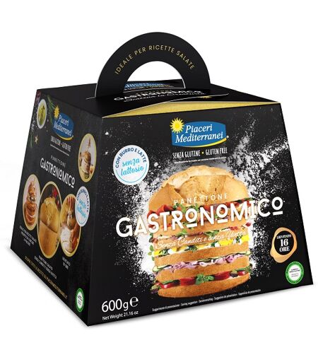 Piaceri Mediterranei - PANETTONE GASTRONOMICO - Descrizione Prodotto senza glutine. Specificamente formulato per persone intolleranti al glutine. Ingredienti Burro delattosato (16%), farina di riso, latte magro delattosato reidratato (12%), uova, zucchero, lievito naturale (acqua, farina di riso, a… ...