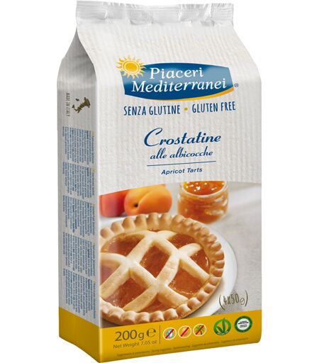 Piaceri Mediterranei - Crostatine - alle albicocche - Descrizione Crostatine all'albicocca. Non contiene uova olio di palma. VeganOk. Ingredienti Farina di riso passata di albicocche 35% (sciroppo di glucosio - fruttosio purea di albicocche 30% zucchero; addensante: pectina; acidificante: acido… ...