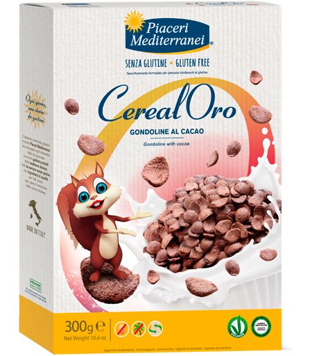 Piaceri Mediterranei CerealOro GONDOLINE AL CACAO Descrizione Gondoline di riso e mais con cacao. Senza uova, olio di palma. VeganOk. Ingredienti Farina di mais 39%, farina di riso 25,8%, zucchero, cacao in polvere 14,3%, sale. Può contenere tracce di latte e frutta a guscio. Senza glutine. Caratteristiche nutrizionali Valori medi per 100 g Energia 1.680 kJ 397 kcal Grassi di cui acidi grassi saturi 3,3 g 1,9 g Carboidrati di cui zuccheri 82 g 28 g Fibre 5 g Proteine 6,2 g Sale 0,5 g Conservazione Validità a confezionamento integro: 18 mesi. Formato Confezione da 300 g Cod. CO11 ...