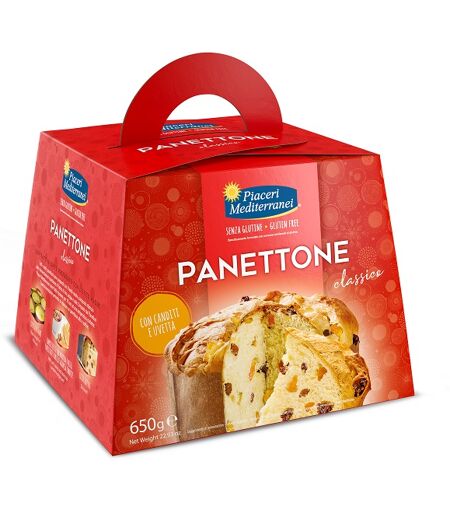 Piaceri Mediterranei - PANETTONE - Descrizione Prodotto senza glutine. Specificatamente formulato per persone intolleranti al glutine. Ingredienti Burro, latte magro reidratato, uova cat. A, uvetta 10%, scorza di arancia candita 10% (scorza di arancia, sciroppo di glucosio - fruttosio, zucchero, ac… ...