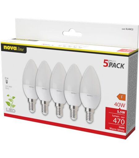 NOVA LINE Pentapack Led Oliva 4,9W E14, Luce Calda 3000K 5L40C2 Novaline