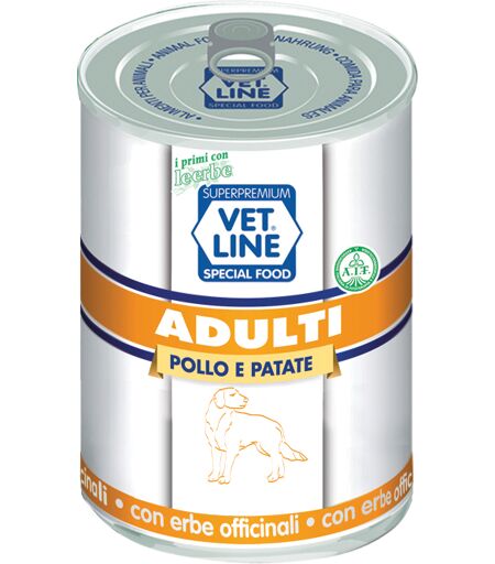 Alimento umido completo e bilanciato per cani adulti. La formulazione monoproteica (pollo) con l'abbinamento delle patate come unica fonte glucidica, scelte per la loro caratterisitca di contenere amidi che una volta destrinizzati (cottura) si trasformano in energia immediatamente disponibile e che non residua. ...