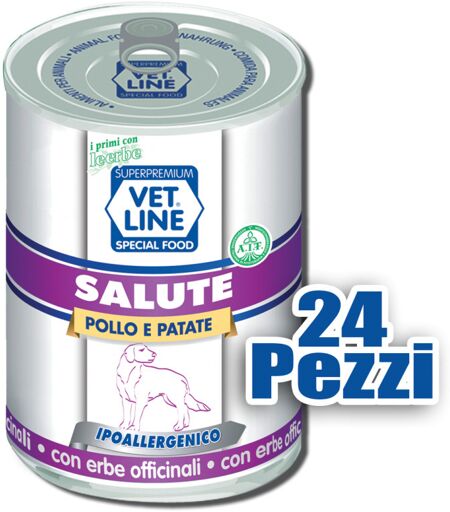 Alimento umido per cani con intolleranze alimentari. La formula salute rappresenta la massima espressione del concetto ipoallergizzante sul mercato. Essa contiene ben nove erbe officinile titolate con provata efficacia a prevenire e curare ttutte le patologie dei soggetti obesi, anziani con intolleranze alimentari, dermatiti, artriti, forme reumatiche, e con abbassamento di fertilità. ...