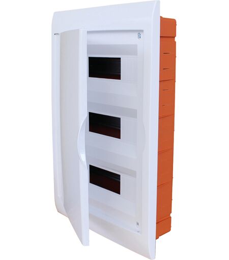 Centralino da incasso per 36 moduli con cornice bianca e portello bianco. Con guida DIN, materiale tecnopolimero isolante non propagante la fiamma e sportello in policarbonato. Modello: FG14636 Dimensioni: 335 x 510 x 80 mm Moduli: 36 Materiale: policarbonato e tecnopolimero non propagante la fiamma Potenza dissip. W: 50 Glow Wire Test: 650 °C Ball Pressure Test: 70°C Impact test: IK07 Temperatura di installazione: -5°C+60°C Grado di protezione: IP40 Standard: CEI EN 60670-1/CEI EN 60670-24 Guida DIN: in tecnopolimero; Colori: Cornice bianca/portello bianco ...