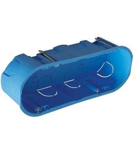 Cassetta modulare da incasso per cartongesso 6/7 posti con inserti in ferro 2x68 IP20 Modello: FG10257 Dimensioni foro: 2xØ68-49mm Colore: Blu In tecnopolimero non propagante la fiamma Glow-Wire test: 850 °C Grado di protezione: IP00-IP20 parte montata in parete cava Standard: CEI EN 60670-1 ...