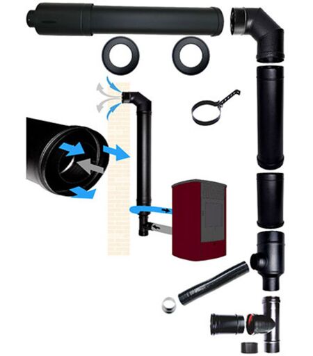 MBM kit tubi canna fumaria stufa pellet coassiale dn 80 125 scarico fumi aspirazione aria made in Italy.