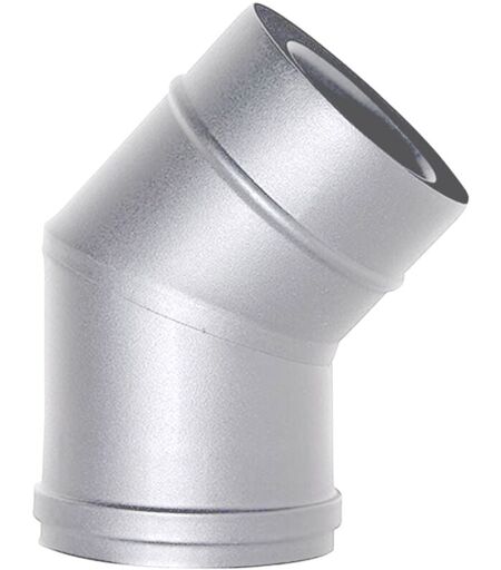 Tubo coassiale INOX curva 45 diametro 80/125 CE in acciaio 316 per stufa pellet. Made in Italy. Canna fumaria coassiale a norma UNI 1856/2. Condotto in parete doppia, con parete interna realizzata in acciaio INOX 316 L spessore 0.5 mm saldato con tecnologia microplasma, parete esterna realizzata in acciaio inox AISI 304 L spessore 0,5 mm. . Il prodotto è marcato CE secondo la norma UNI EN 1856/2. Utilizzabile in impianti con temperature di esercizio inferiori a 200°c, con fumi in pressione e depressione condensati e secchi, con guarnizioni siliconiche ht (fornite a corredo). È sconsigliato l'uso in impianti con generatori di calore funzionanti a gas e/o gasolio. Tra i due tubi coassiali si forma un'intercapedine circolare, che tramite l'apposito elemento separatore viene utilizzata per portare all'interno l'aria utilizzata dal generatore di calore come comburente, oppure per climatizzazione.Per gli accessori vedere PARETE SINGOLA diametro 125 (esterno) o diametro 80 (interno). ...