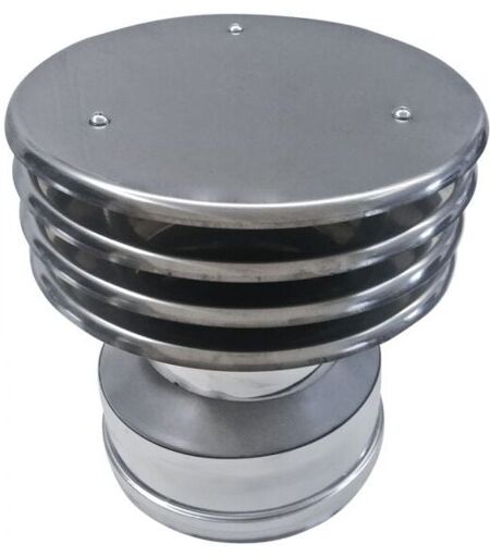 Terminale cappello lamellare canna fumaria a parete doppia inox DN 250/300. Questo cappello è un terminale della canna fumaria che evita l'entrata dell'acqua piovana nella stessa e garantisce una corretta evacuazione dei fumi anche in presenza di vento. Elemento canna fumaria realizzato in acciaioINOX 316 spessore 0,5 mm. La saldatura tig senza apporto di materiale assicura un' elevata resistenza alla corrosione prodotta da condense acide e semplicità di manutenzione. L'innesto tra i vari elementi è realizzato tramite un giunto a bicchiere maschio/femmina sistema certificato CE in conformità alla norma EN1856-2:2009. Resiste a temperature di esercizio che raggiungono i 600° in pressione negativa (n1)senza guarnizione, ed i 200° in pressione positiva (p1) utilizzando l'apposita guarnizione siliconica acquistabile a parte, che garantisce alle giunzioni una perfetta tenuta ai gas e alla condensa. È inoltre conforme alla norma di installazione UNI/TS 11278:2008. Designazione con ...