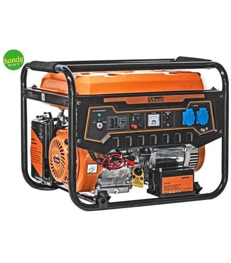 Generatore Avviamento Elettrico prodotto dal brand Vinco. Generatore benzina 4 tempi monofase da 5,5KW(potenza nominale). Avviamento manuale. Stabilizzatore di tensione AVR. Utilizzabile per emergenze, illuminazione e hobbistica. Lavvolgimento dellalternatore 100% rame garantisce durata e affidabilità. Dotato di presa da 16A, presa da 32A, spia per il sovraccarico, spiabasso livello dolio, voltmetro analogico, presa 12V. Telaio anticorrosione maggiorato e rinforzato per aggiunta ruote (opzionali). Limballo contiene 1 generatore. Dimensioni: 70x54x53 cm ...