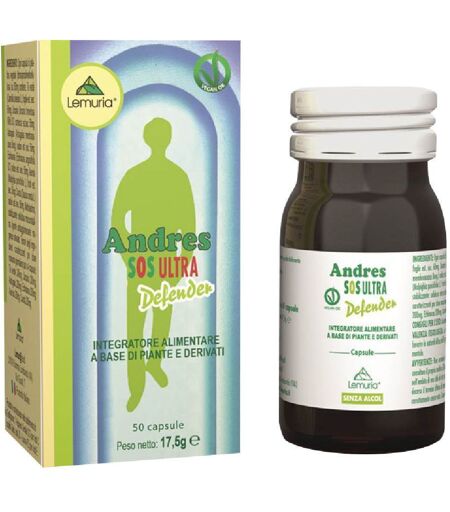 Gli integratori non sostituiscono un’alimentazione equilibrata e variegata e uno stile di vita sano.Integratore alimentare a base di piante e derivati. Andres Sos Ultradefender è un composto di piante bilanciate, utili per stimolare le difese naturali dell’organismo e per garantire un’azione di sostegno sia ricostituente che antiossidante. Le radici di uncaria, astragalo ed echinacea ed i frutti di acerola sono utili per favorire le naturali difese dell'organismo.IngredientiOgni capsula da 350 mg. di gelatina vegetale contiene: Tè verde (Camellia sinensis L.) foglie est. sec. 60 mg, Uncaria (Uncaria kuntze tomentosa Wild DC) corteccia est.sec. 50 mg, Astragalo (Astragalus membranaceus moench.) radice est.sec.50 mg, Echinacea (Echinacea angustifolia DC) radice est.sec.50 mg, Acerola (Malpighia punicifolia L.) frutti est.sec. 50 mg, Carota (Daucus carota L.) radice est.sec.50 mg, Maltodestrina, stabilizzante: cellulosa microcristallina, agente antiagglomerante: magnesio stearato.Assunzione consigliataAssumere da 2 a 4 capsule al giorno ai pasti.AvvertenzeAvvertenze:Non superare la dose giornaliera raccomandata. Tenere fuori dalla portata dei bambini al di sotto dei tre anni. Durante la gravidanza e l'allattamento consultare il proprio medico.Conservazione:Conservare in un luogo fresco e asciutto. Si prega di fare riferimento, se necessario, ad ulteriori istruzioni riportate sulla confezione. Contenuto nettoFlacone da 50 capsuleProduttoreLemuri@ SrlVia Giusti, 721019, Somma Lombarda, VAItalia ...