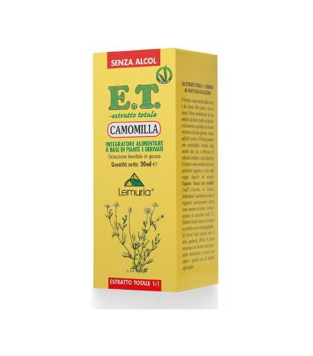 E.T. CAMOMILLA - Estratto totale di camomilla. I fiori di camomilla favoriscono la funzione digestiva la regolare motilità gastrointestinale ed eliminazione dei gas ed hanno inoltre un'azione emolliente e lenitiva sul sistema digerente. Favoriscono infine il rilassamento (sonno) e benessere mental… ...