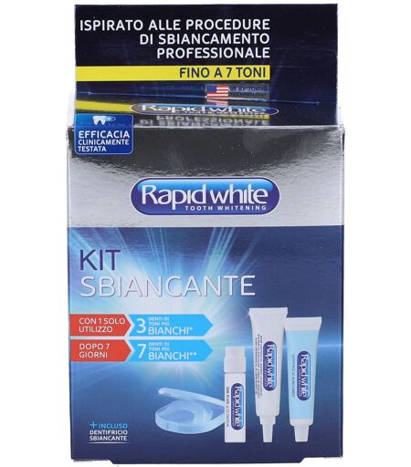 Denti fino a 7 Toni più Bianchi in 7 Giorni, Sorriso Luminoso in una Settimana - DESCRIZIONE PRODOTTO: - Kit Sbiancante con Bite Rapid White è un trattamento sbiancante domiciliare professionale che consente di ottenere denti visibilmente più bianchi in soli 7 giorni, senza l’uso di perossido di id… ...