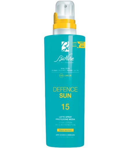 BioNike - DEFENCE SUN 15 - LATTE SPRAY - Descrizione Latte spray, protezione media. Formula eco - compatibile studiata per una tripla fotoprotezione della pelle: - Difesa ad ampio spettro dai raggi UVA - UVB; - Difesa dai radicali liberi generati da raggi IR; - Difesa dai danni biologici a lungo te… ...