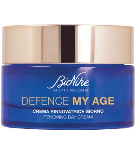 BioNike - DEFENCE MY AGE - CREMA RINNOVATRICE GIORNO - Descrizione Texture leggera, morbida e di rapido assorbimento dal profumo floreale - marino. Formulato con Skin Resiliency Complex, è arricchito con vitamina C per contrastare secchezza cutanea, colorito spento, macchie scure e perdita di compa… ...