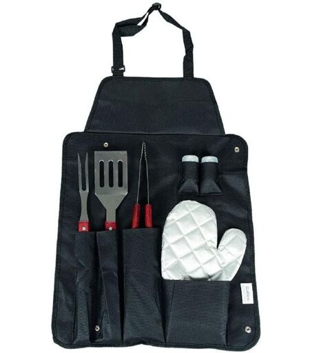 SET 6 UTENSILI CON GREMBIULE PER BARBEQUE C'è chi dice che per realizzare un barbecue a regola d'arte servano delle ottime materie prime. È vero. ma per un'eccellente lavorazione delle stesse occorre un'attrezzatura che ci accompagni dal taglio fino alla cottura. Set 6 utensili per barbecue Grembiule in poliestere: 44 x h56.5 cm Guanto termorestistente con rivestimento interno in alluminio: 16 x 24 x h2 cm Paletta: 39 cm Pinza per alimenti: 40.5 cm Forchettone in acciaio con impugnatura in legno: 38.5 cm Dosa sale e pepe in plastica: 3.5 x h6.5 cm ...