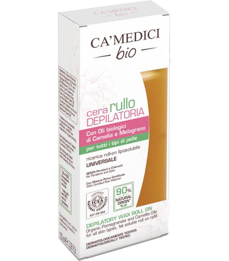 CA' MEDICI bio - CERA RULLO DEPILATORIA - Descrizione Cera depilatoria liposolubile da utilizzare con apposito scaldacera. La sua formula con oli di melograno e camelia è adatta a tutti i tipi di pelle grazie alle sue proprietà idratanti e lenitive. Formulazione senza parabeni e coloranti, arricchi… ...