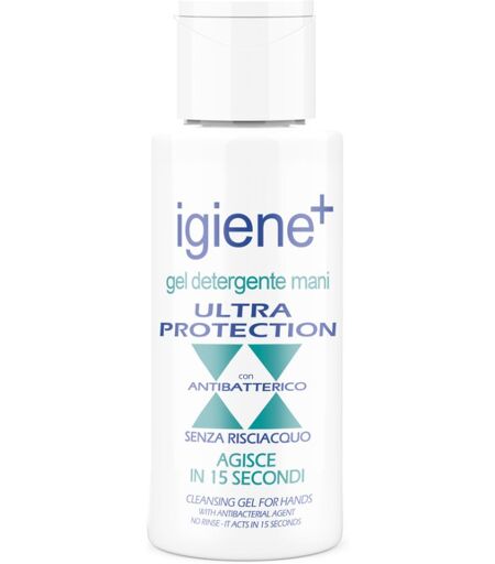 igiene+ - gel detergente mani ULTRA PROTECTION - Descrizione Gel detergente studiato per pulire a fondo la pelle delle mani senza bisogno dell'acqua. Pratico e sicuro svolge un'efficace azione detergente, assicurando la massima igiene anche fuori casa. Contiene alcol al 60%. - Componenti Alcohol de… ...