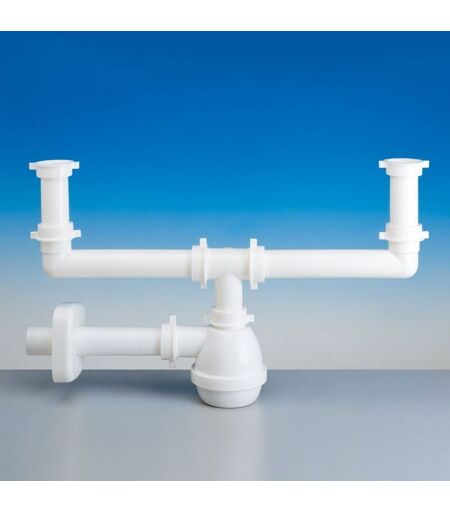 Sifone per lavelli a due vasche completo di raccordo 1"1/2 tubo scarico in ottone ø 40 ...