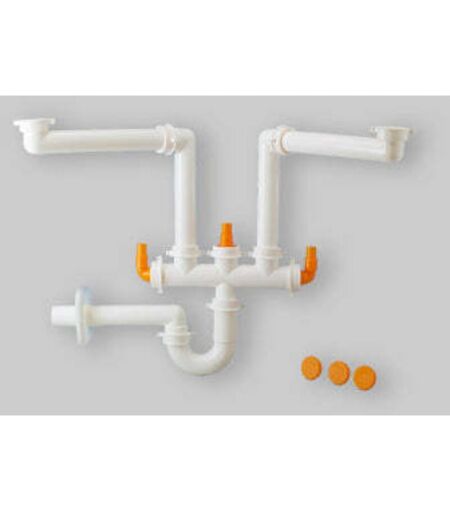 Sifone salvaspazio per lavelli a due vasche Spazio 2/35, Polypropylene Ø40, 1 ½", colore bianco. ...