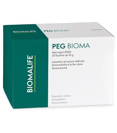 PEG BIOMA - Descrizione Dispositivo medico. Trattamento sintomatico della stipsi. Favorisce la peristalsi aiutando ad avere un'adeguata evacuazione intestinale contrastando così la stitichezza e prevenendo la formazione di fecalomi. - Ingredienti Macrogol sucralosio. - Senza glutine e zucchero. … ...