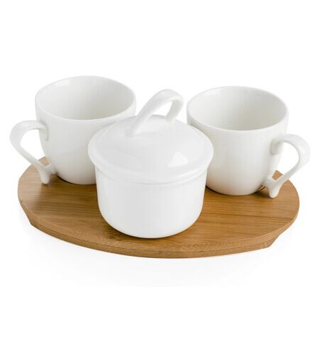 Brandani COFFEE SET 3 PZ PORCELLANA BIANCA C/VASSOIO BAMBOO